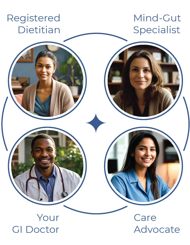 - A dedicated care team A Mind-Gut Specialist, Registered Dietitian, and Care Advocate working together for you